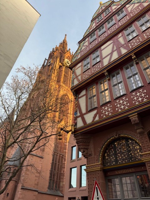 Mit viel Charme und spannenden Anekdoten erfuhren wir unter anderem, warum der Frankfurter Weihnachtsbaum eine bestimmte Mindestgröße haben muss, weshalb er traditionell einen Namen trägt und wo das einzige originale Fachwerkhaus steht, das die Jahrhunderte überdauert hat. Ebenso entdeckten wir, warum sich auf dem Römerberg sechs Katzen verstecken, welche Geschichte die beliebten Bethmännchen mitbringen und viele weitere Überraschungen rund um die Stadt am Main.